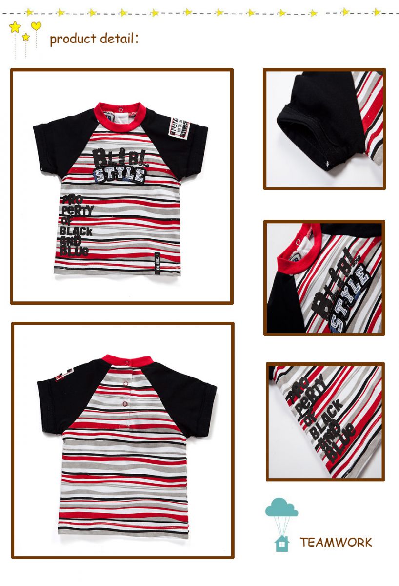 Black and blue boy T-shirt 100%cotton with stripe printed and applique |
